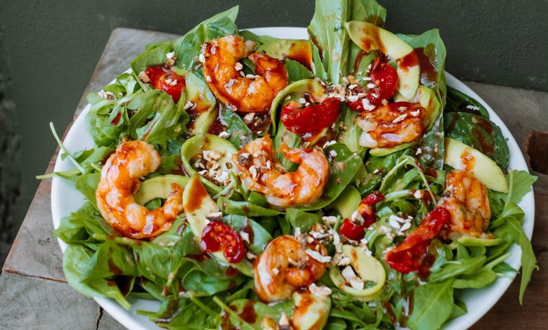 Салат с авокадо и креветками готов к подаче. Украсьте его листьями зелени и дольками лимона. Приятного аппетита!